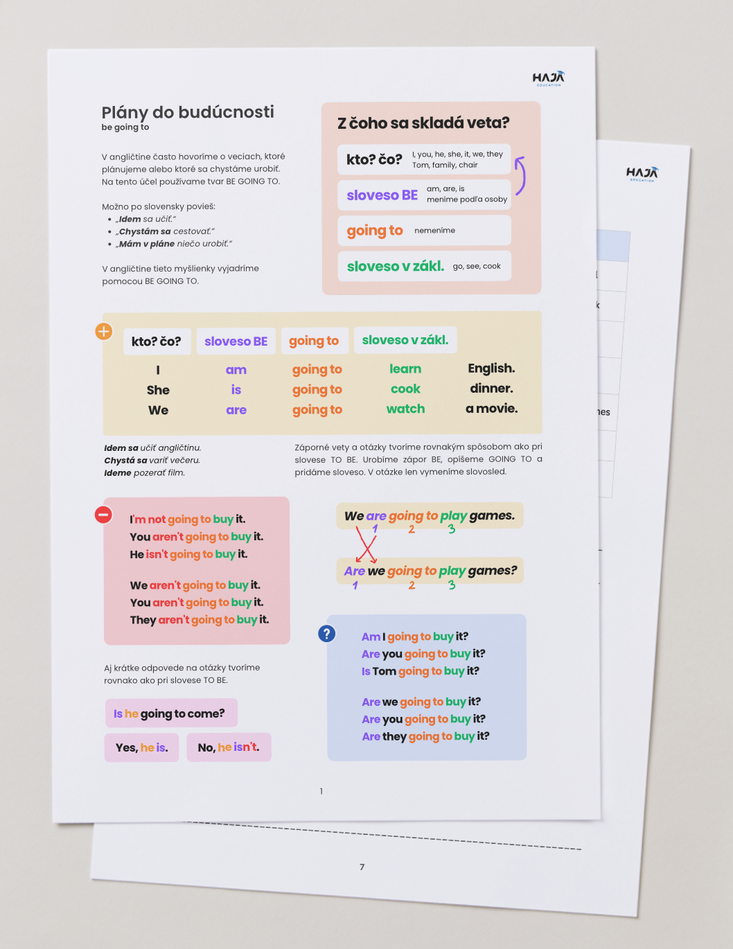 PDF obsahuje témy "Be going to" - kladné vety, záporné vety a otázky